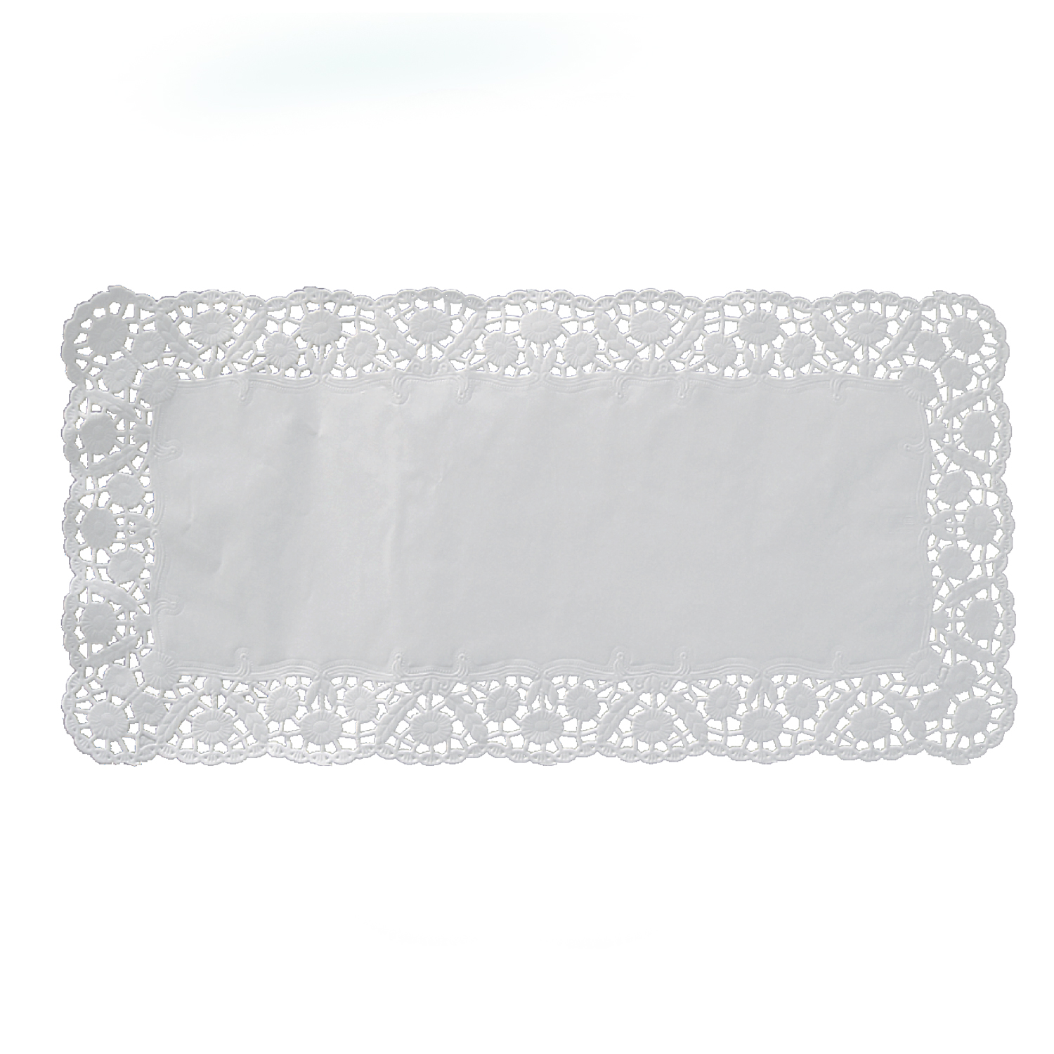 Dekoračná krajka (PAP) hranatá biela 40 × 30 cm. Použitie pri prezentácii tort a cukrárenských výrobkov. Balenie obsahuje 100 kusov.