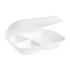 Menu box vyrobený z polystyrénu (XPS) s tromi oddelenými priehradkami umožňuje separáciu jednotlivých častí jedla pri transporte.