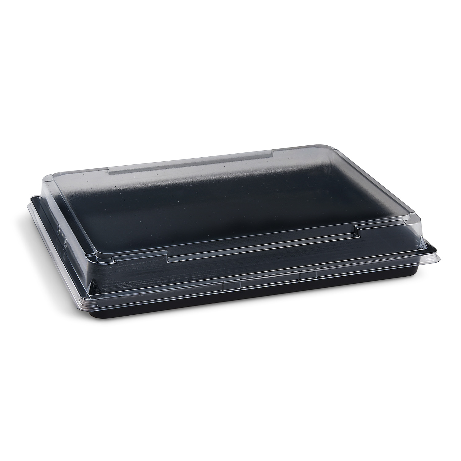Miska na sushi PET čierna 255 × 185 × 20 mm s viečkom (200 sád)