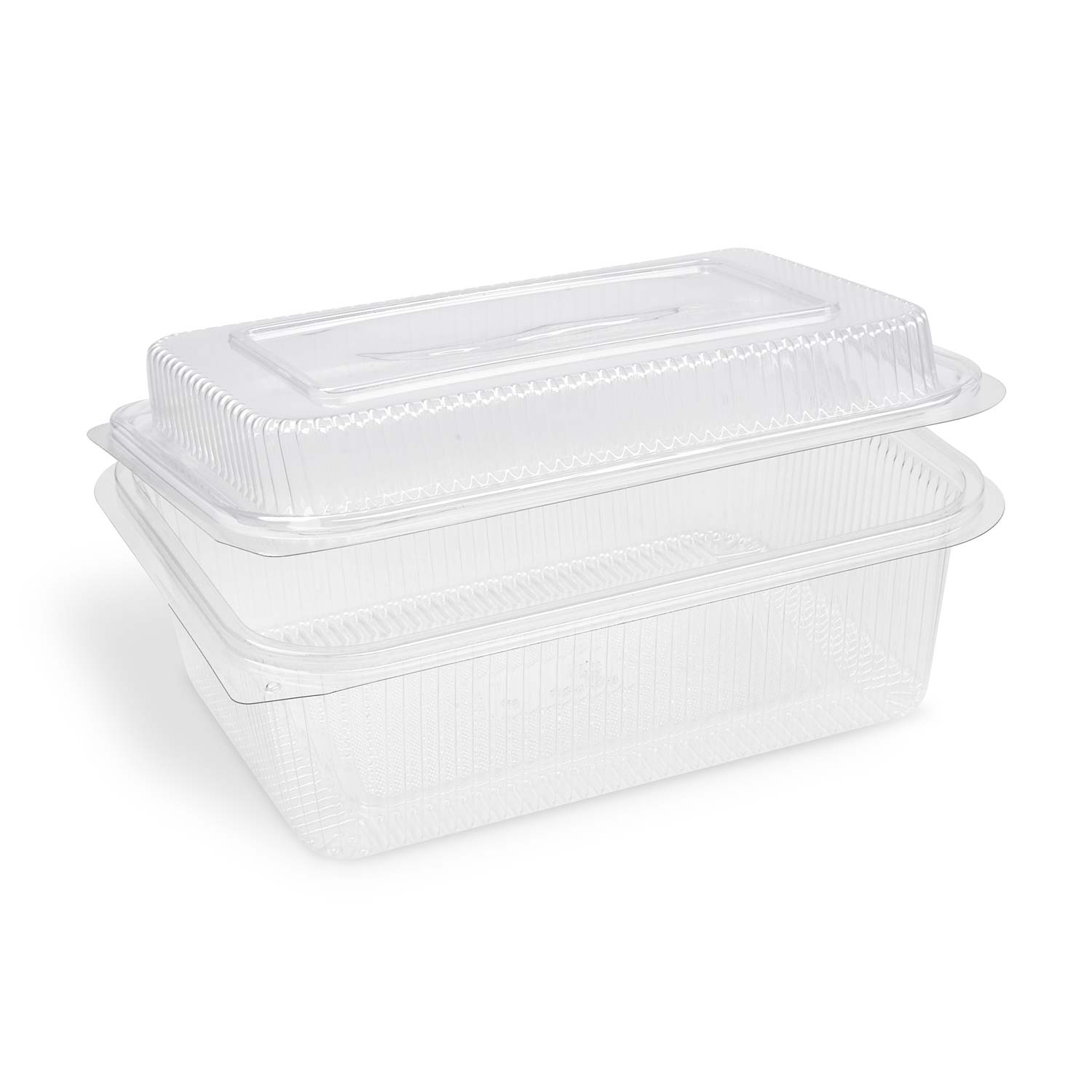 Miska rPET s viečkom hranatá priehľadná 1500 + 450 ml (50 ks)
