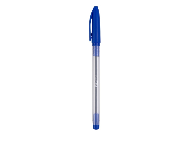 Jednorazové guľôčkové pero s priehľadným telom, ktoré umožňuje kontrolovať množstvo náplne. Farba viečka zodpovedá farbe náplne. Tvarovaný úchop na pohodlné držanie. Tlačené logo na tele.