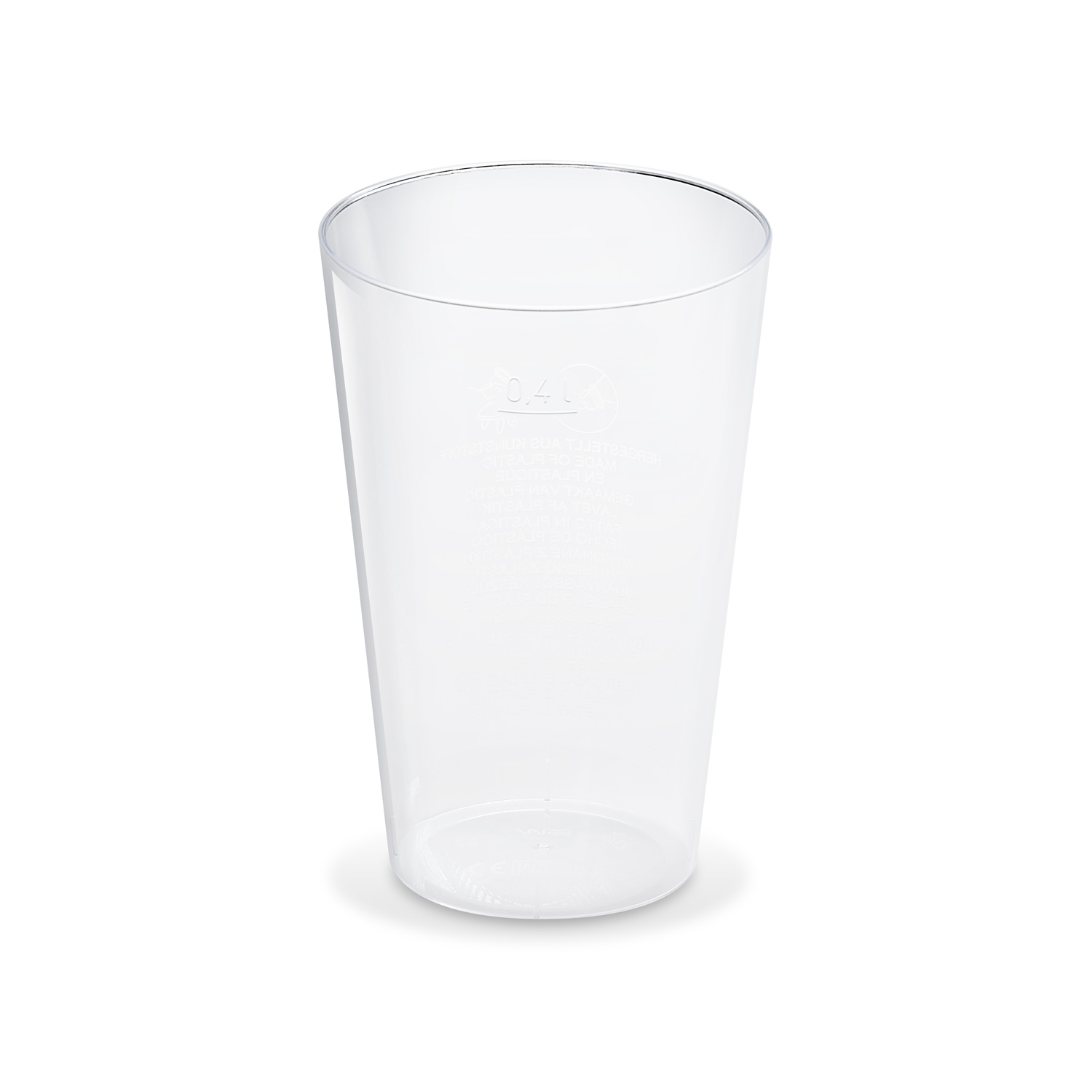 Plastový pohár z materiálu PS v kryštálovom prevedení s priemerom 86 mm a objemom 0,4 l.
