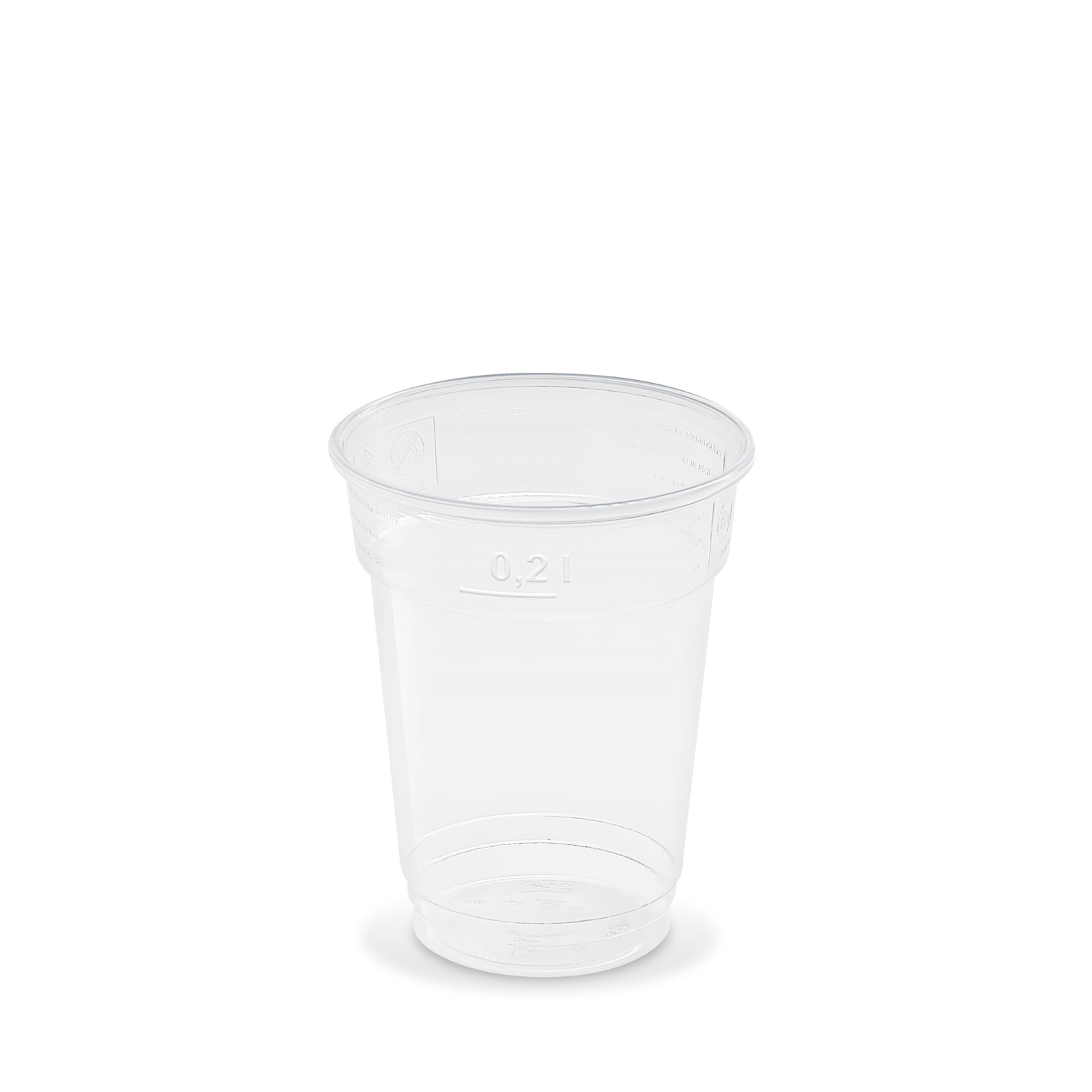 Plastový pohár z materiálu rPET s priemerom 78 mm a objemom 0,2 l určený na podávanie nápojov.