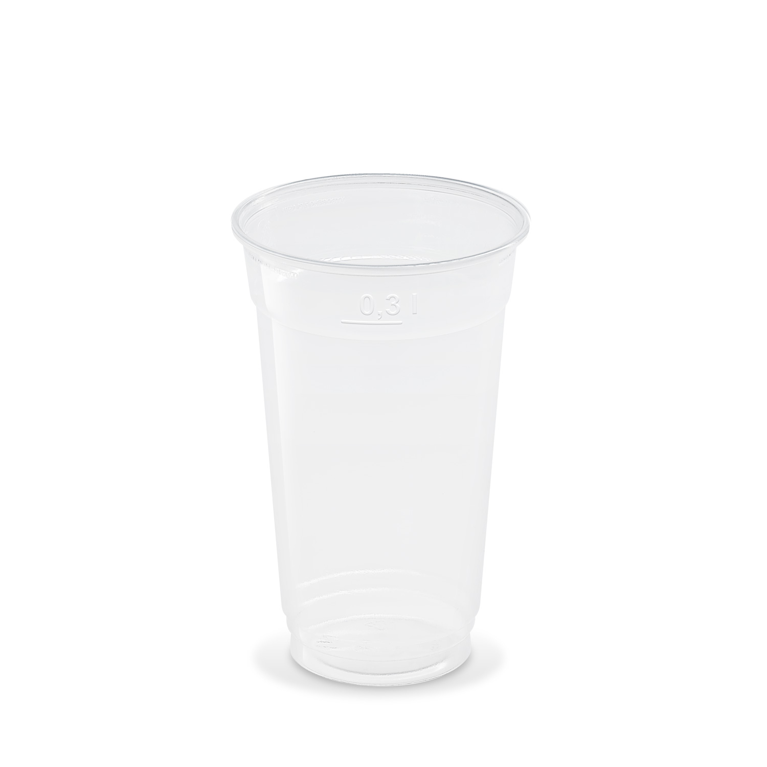 Plastový pohár vyrobený z číreho recyklovaného PET materiálu (rPET) s priemerom 78 mm a objemom 0,3 l určený na podávanie studených nápojov. Materiál rPET je pevný a transparentný, vhodný na jednorazové použitie. Pohár sa používa v gastronomických prevádzkach, bufetoch alebo pri servírovaní nápojov na podujatiach.