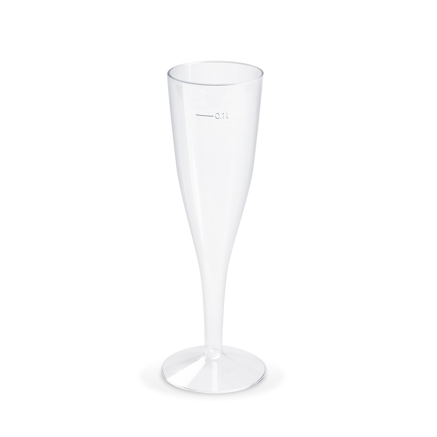 Plastový pohárik na sekt z materiálu PS v kryštálovom prevedení s objemom 0,1 l.