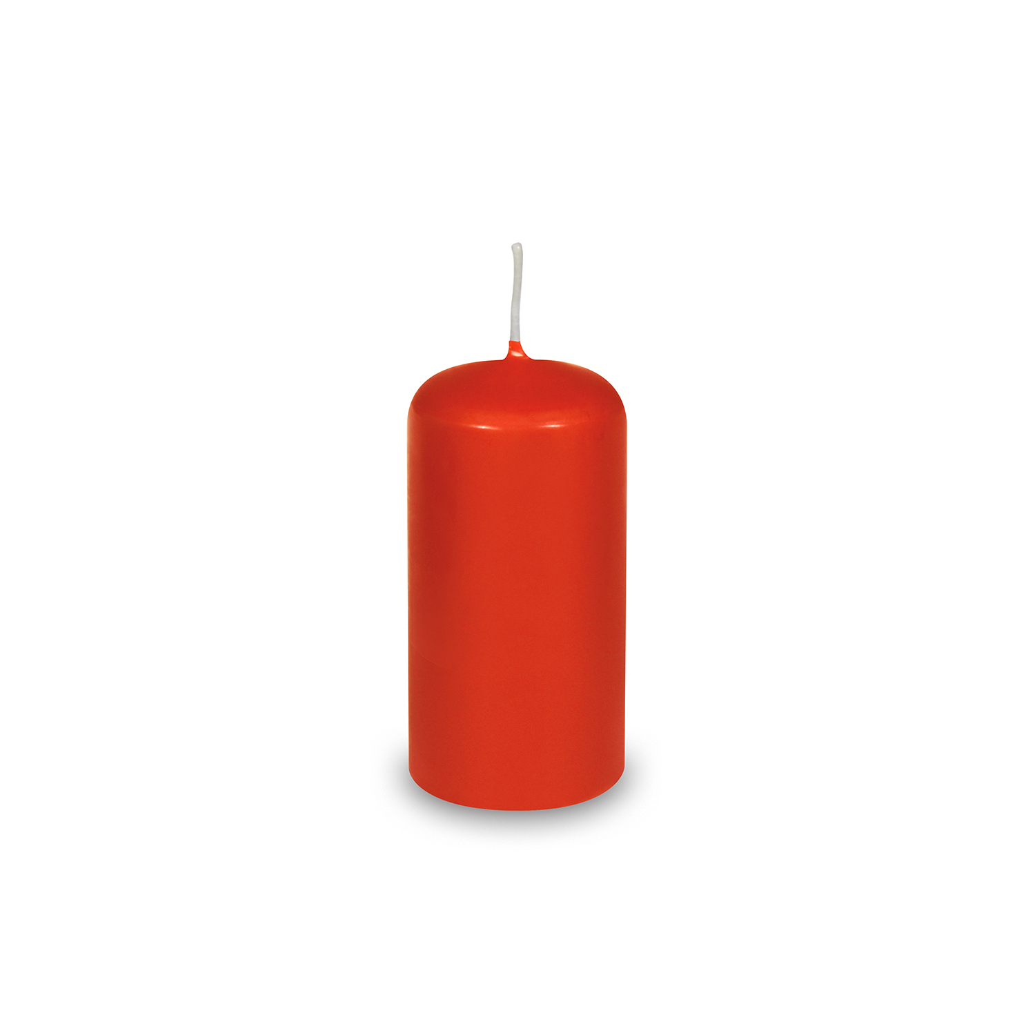 Valcová sviečka z vosku s priemerom 40 mm a výškou 80 mm v červenom prevedení. Určená na dekoratívne použitie.