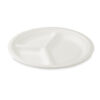 Jednorazový trojdielny tanier z lisovanej cukrovej trstiny s priemerom 26 cm na oddelené servírovanie jedál.