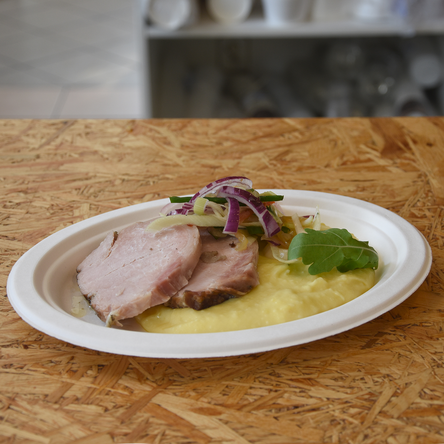 Tanier vyrobený z lisovanej vlákniny cukrovej trstiny (bagasa) s priemerom 26 cm. Materiál je pevný a vhodný na podávanie hlavných jedál, príloh alebo kombinovaných porcií. Tanier sa používa v gastronomických prevádzkach, bufetoch alebo pri cateringových službách.