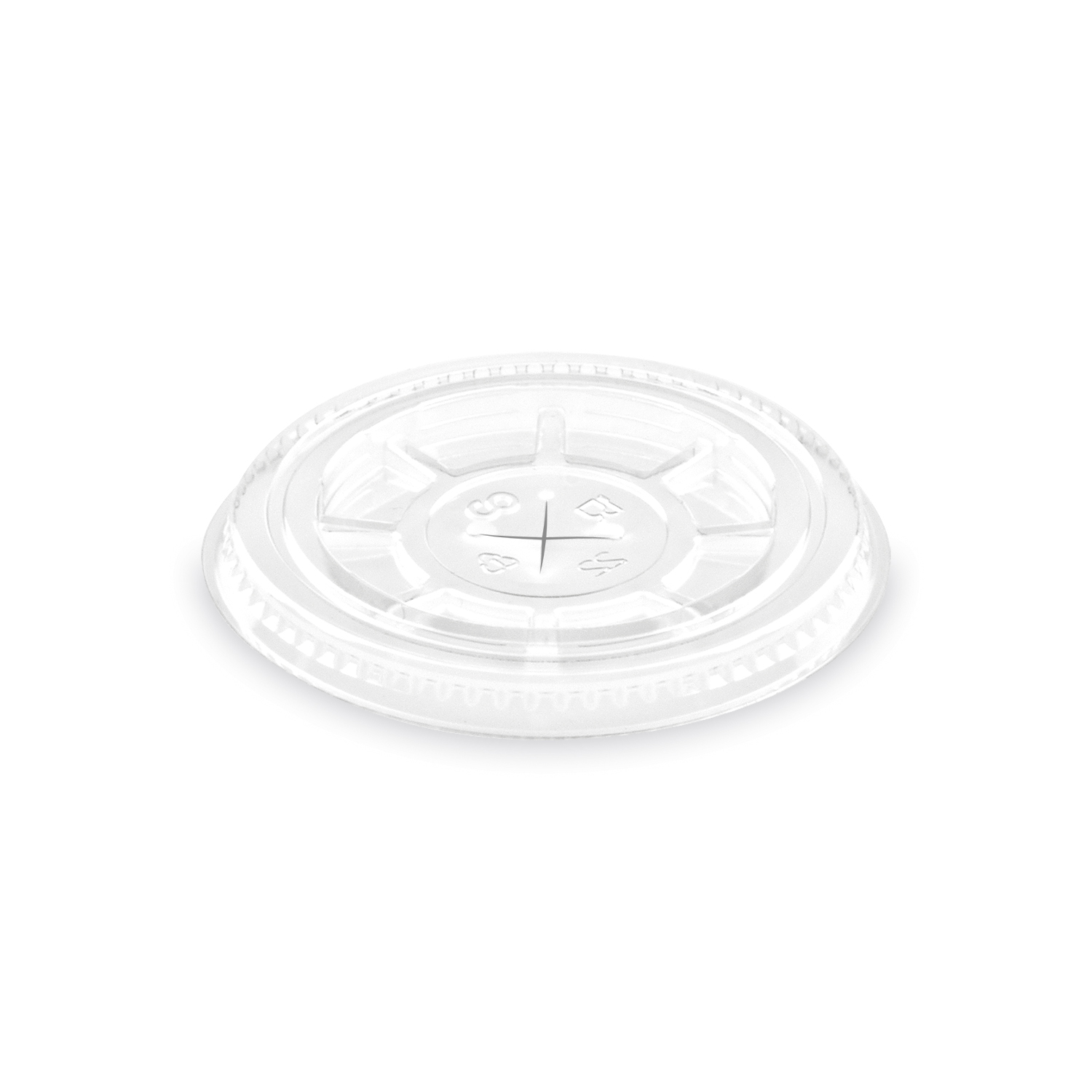 Plastové viečko z materiálu rPET s krížovým otvorom určené pre poháre s priemerom 78 mm.