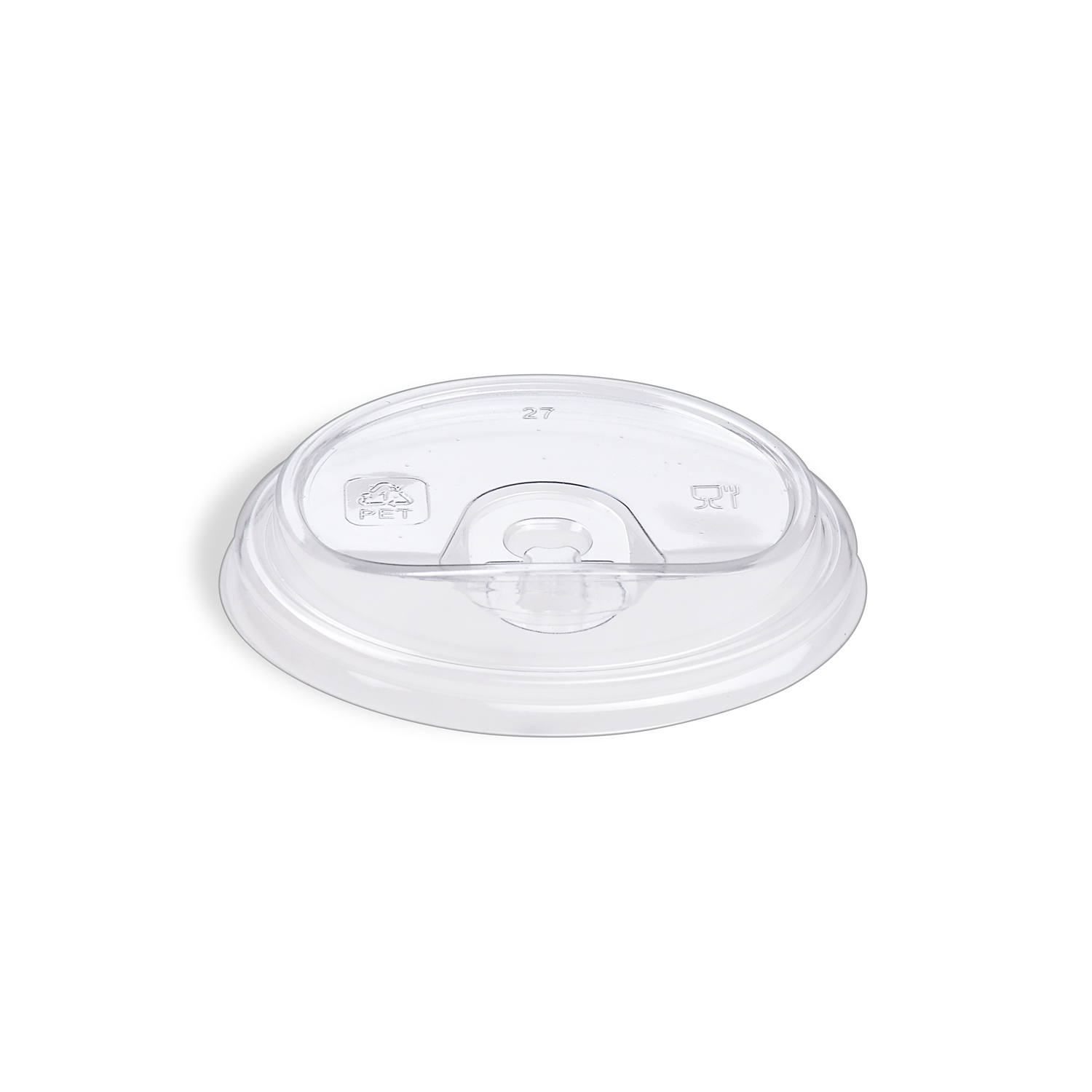 Plastové viečko vyrobené z recyklovaného PET materiálu (rPET) s otvorom na pitie určené pre papierové poháre s priemerom 90 mm. Viečko slúži na zakrytie pohára a umožňuje pohodlné pitie nápoja bez odstránenia viečka. Používa sa pri balení a predaji nápojov v gastronomických prevádzkach.