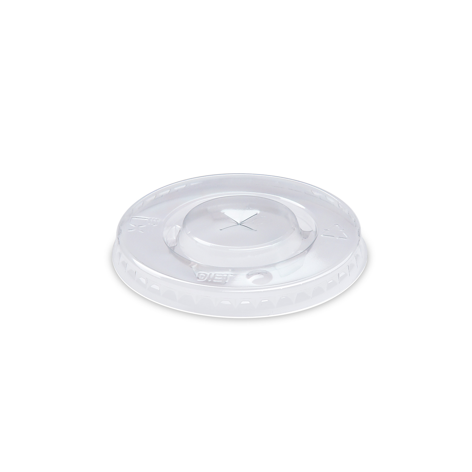Plastové viečko vyrobené z recyklovaného PET materiálu (rPET) s krížovým otvorom určené pre poháre s priemerom 90 mm. Otvor umožňuje vloženie slamky pri servírovaní nápojov. Viečko chráni nápoj pred znečistením a používa sa pri balení nápojov na predaj.